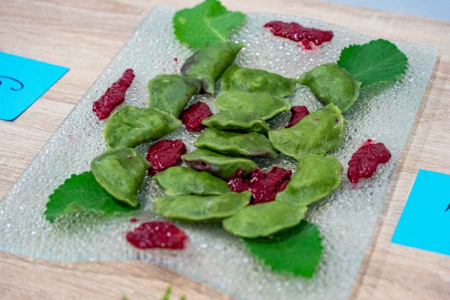 - 3. miejsce – Koło Gospodyń Wiejskich w Horyńcu-Zdroju za pierogi w cieście szpinakowym z maliną i białą czekoladą oraz sosem jeżynowym.