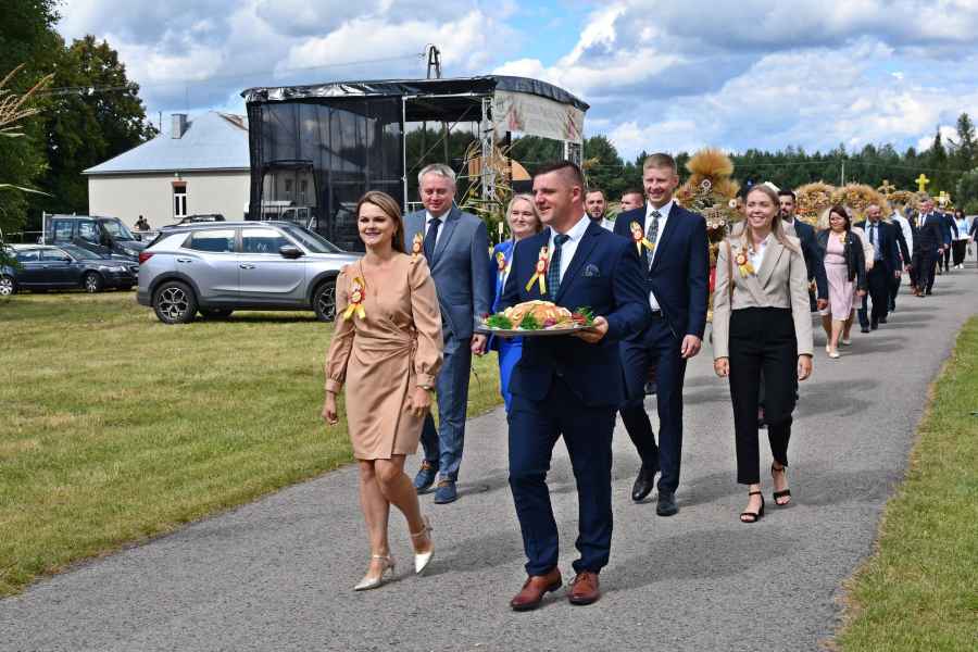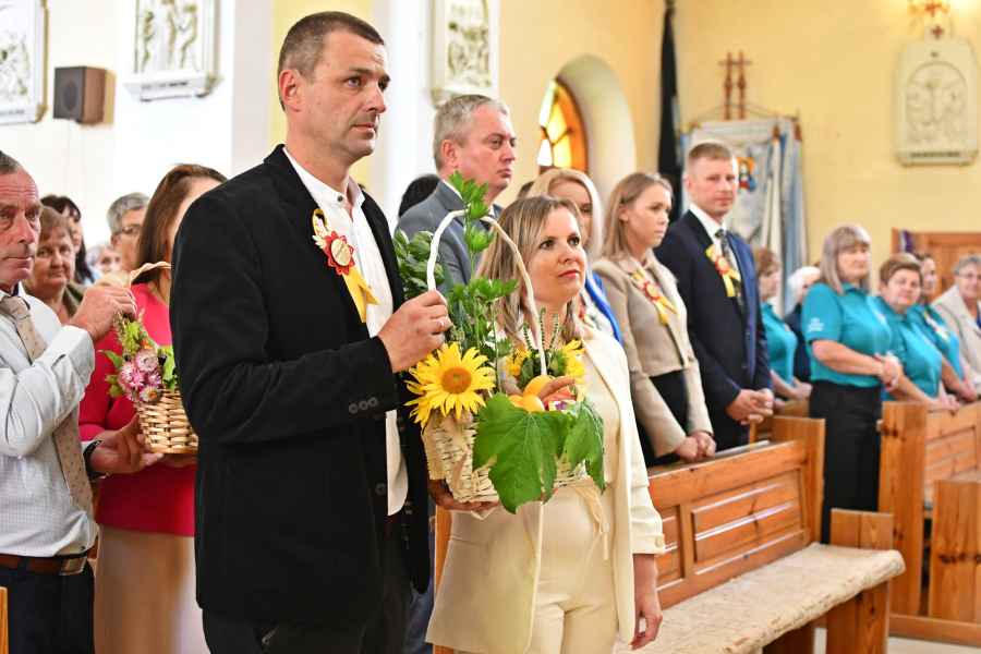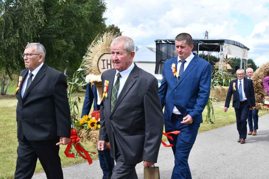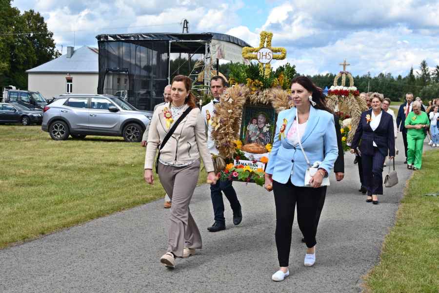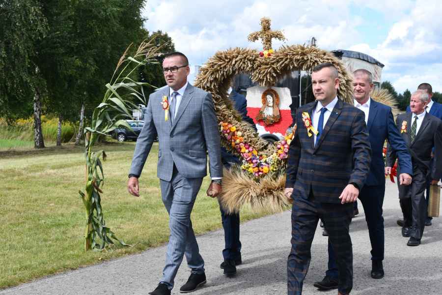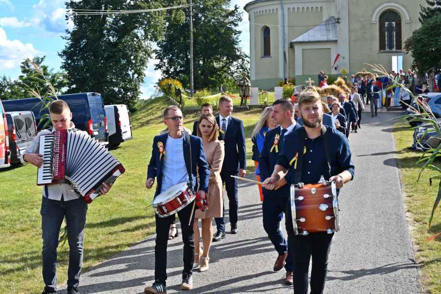 Uroczystości rozpoczęły się od poświęcenia nowej kaplicy, po czym barwny korowód dożynkowy wyruszył z placu przy świetlicy i udał się na Mszę Świętą Dożynkową.