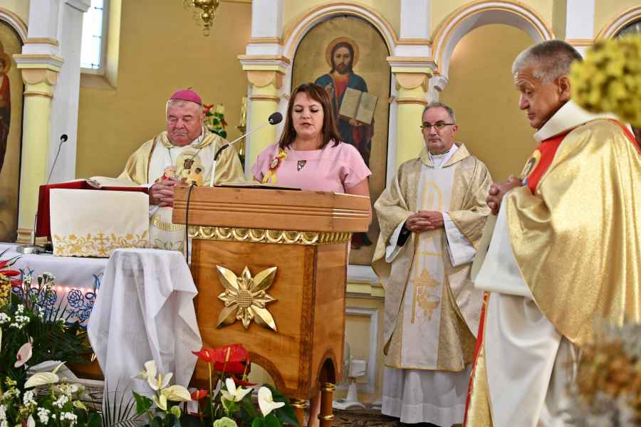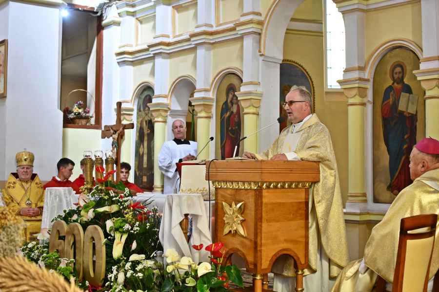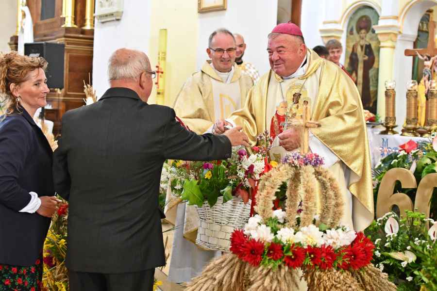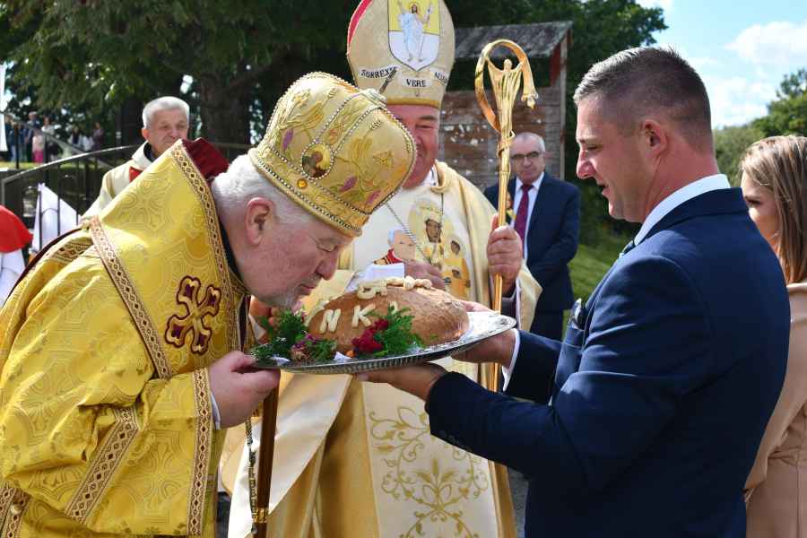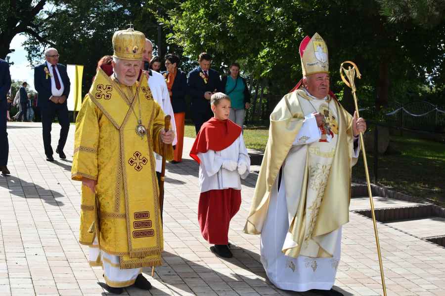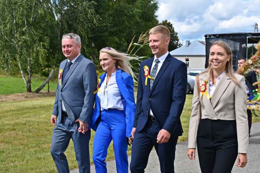 Uroczystości rozpoczęły się od poświęcenia nowej kaplicy, po czym barwny korowód dożynkowy wyruszył z placu przy świetlicy i udał się na Mszę Świętą Dożynkową.
