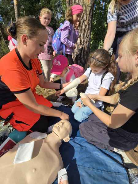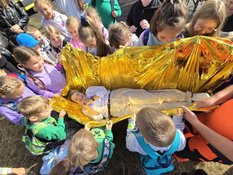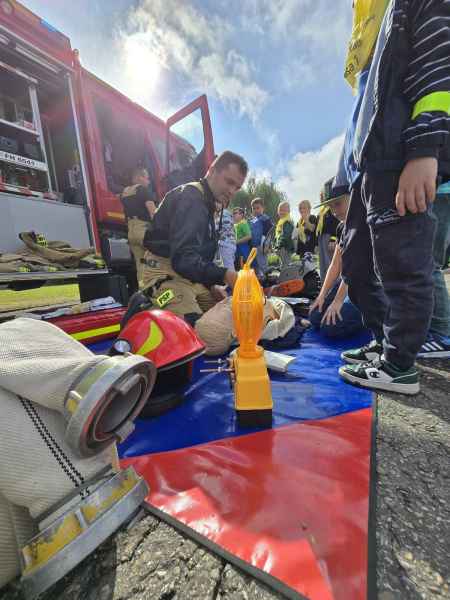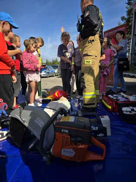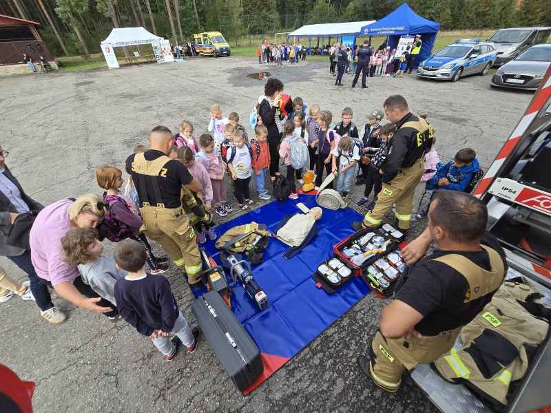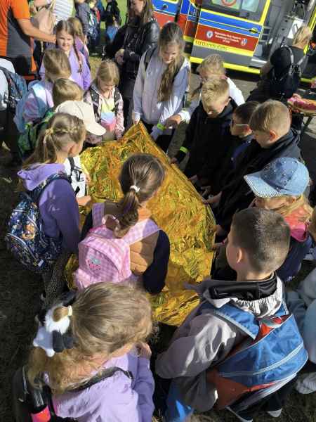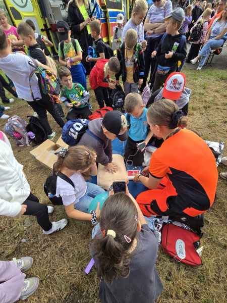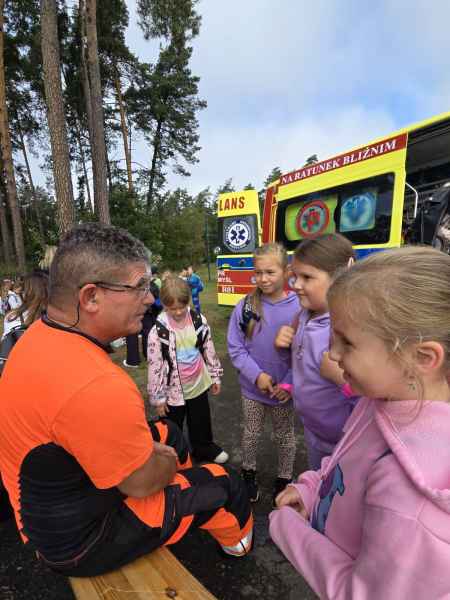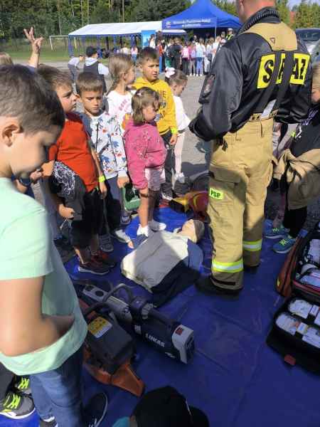 Na miejscu obecni byli również strażacy, którzy prezentowali samochód ratowniczo-gaśniczy oraz urządzenia używane podczas akcji ratowniczych. Opowiadali o specyfice swojej pracy i odpowiadali na pytania uczniów. Z kolei ratownicy medyczni przybliżali dzieciom tajniki swojej profesji, pokazując, jakie umiejętności są potrzebne przy udzielaniu pierwszej pomocy i jak należy zachować się w sytuacjach zagrożenia zdrowia i życia.