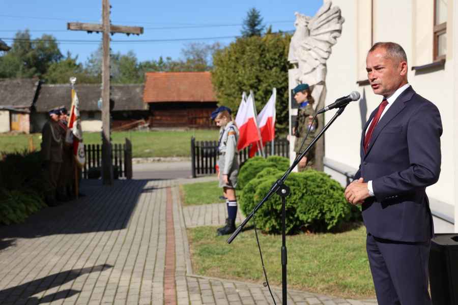 – Dziękuję wszystkim Państwu za obecność na dzisiejszej uroczystości. Szczególne wyrazy wdzięczności kieruję do przedstawicieli formacji kombatanckich i wolnościowych, a także do strzelców i harcerzy, którzy od lat wiernie towarzyszą nam w takich chwilach. Dziękuję również szkołom i najmłodszym – zuchom, którzy z dumą i powagą stoją dziś przed pomnikiem. Wasza obecność jest nie tylko pięknym gestem, ale przede wszystkim lekcją patriotyzmu – mówił wójt.