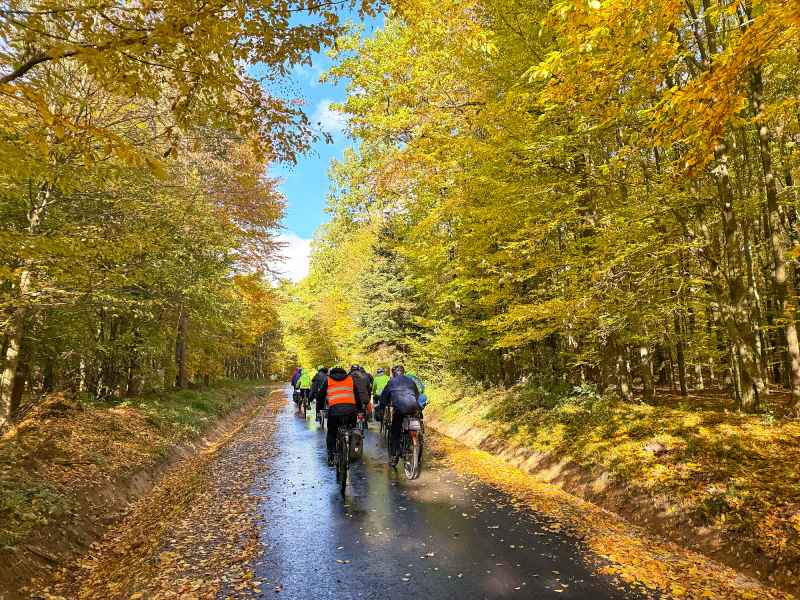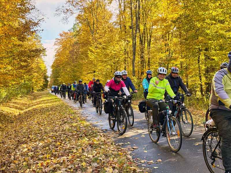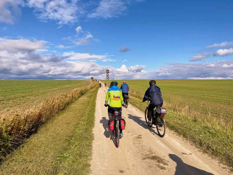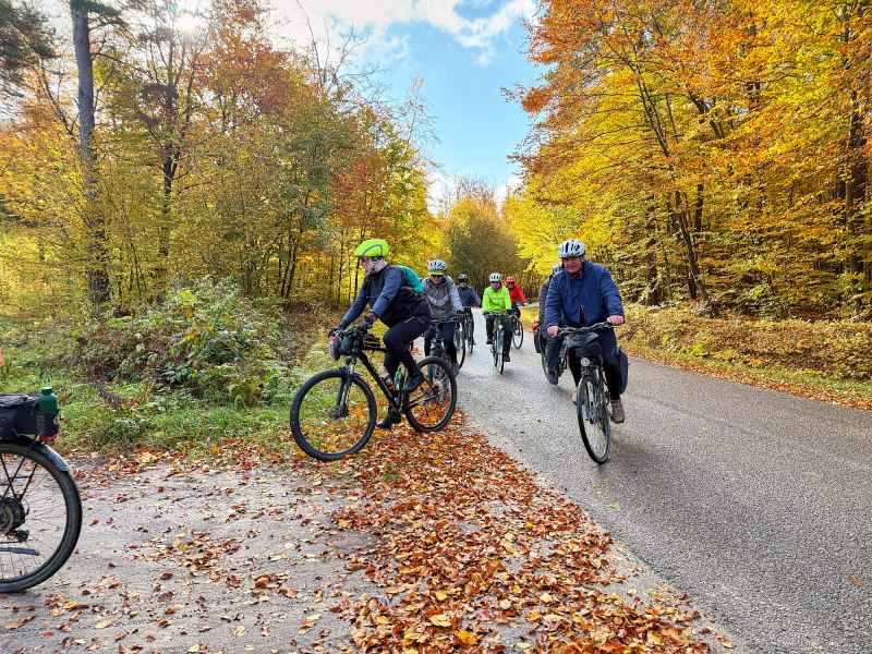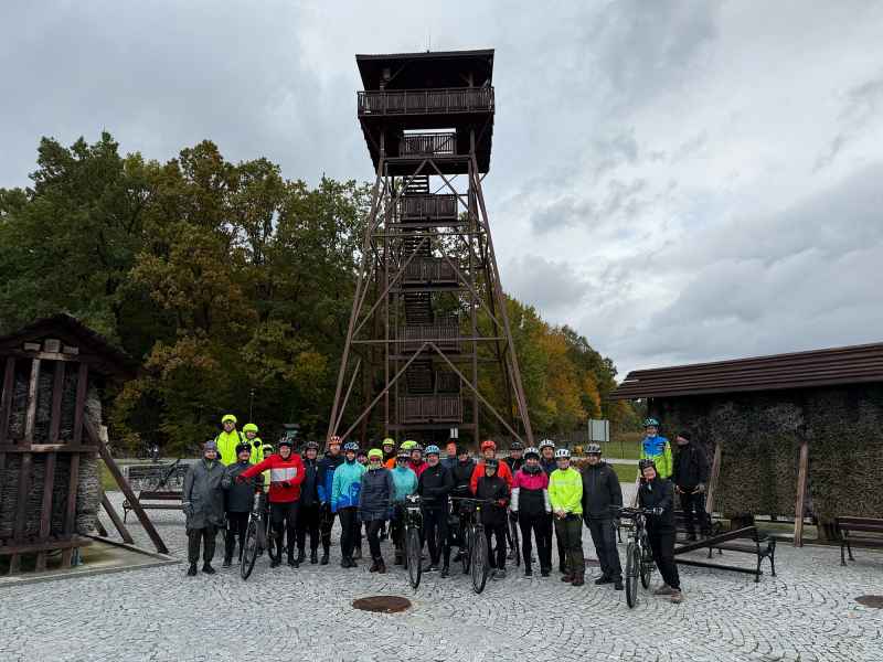 Pierwszy dzień wyprawy rozpoczął się w słonecznej aurze i w otoczeniu złotych barw jesieni. Rowerzyści na rozgrzewkę zdobyli pierwszą wieżę widokową w Horyńcu-Zdroju, a następnie przez klimatyczną aleję lipową w Hucie Kryształowej i zabytkowy cmentarz w Sieniawce dotarli do kolejnej - w Borowej Górze.