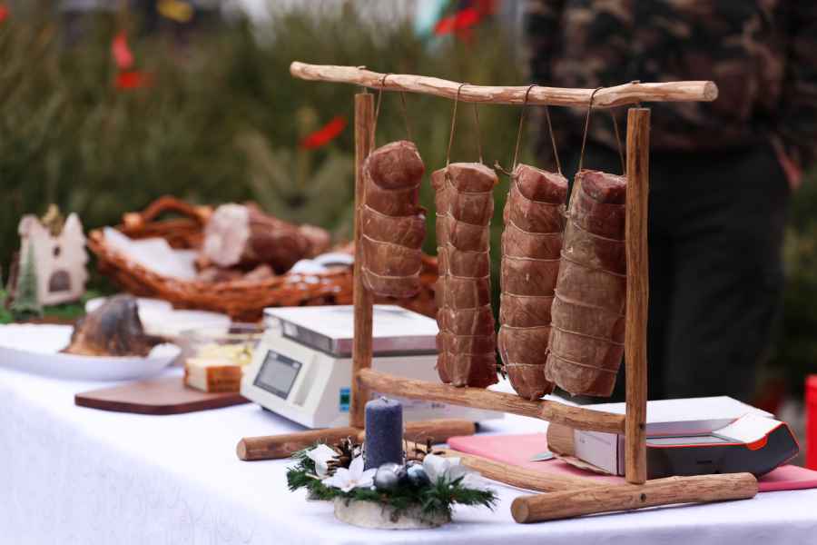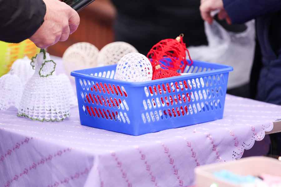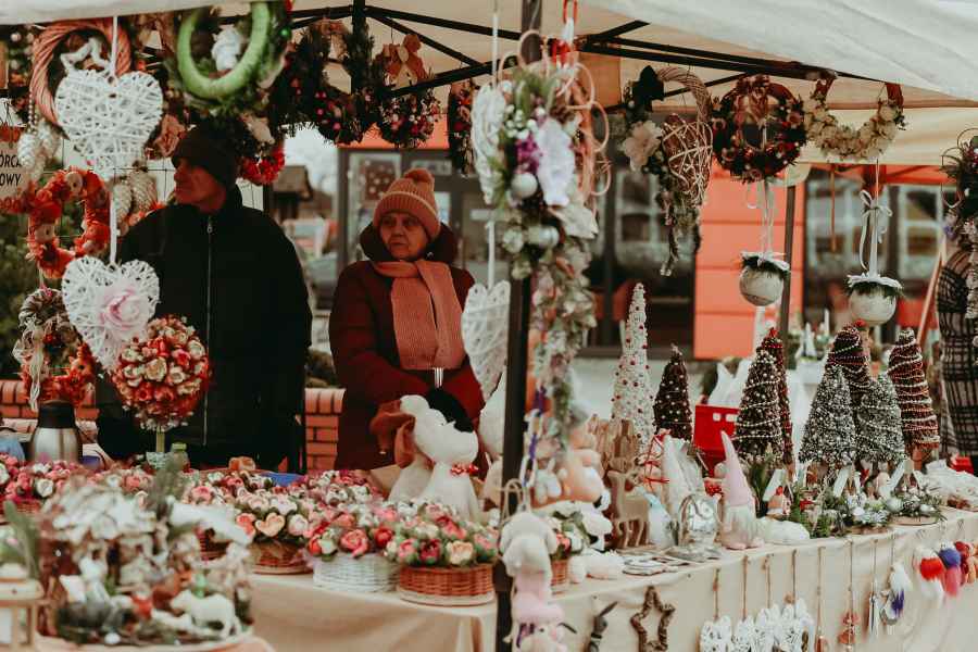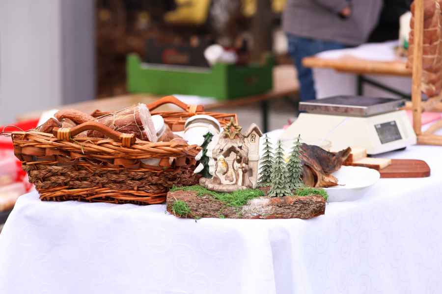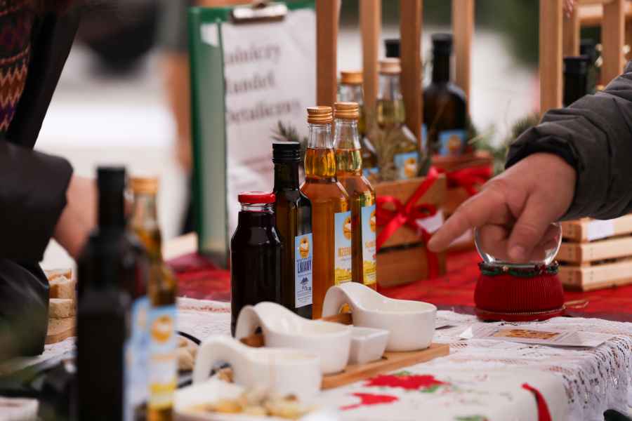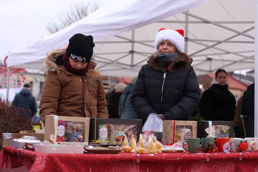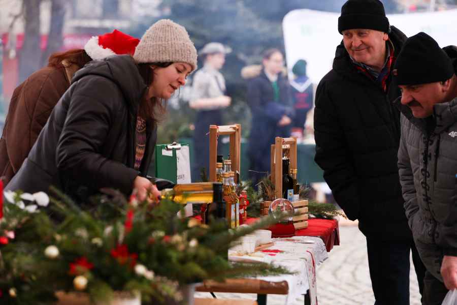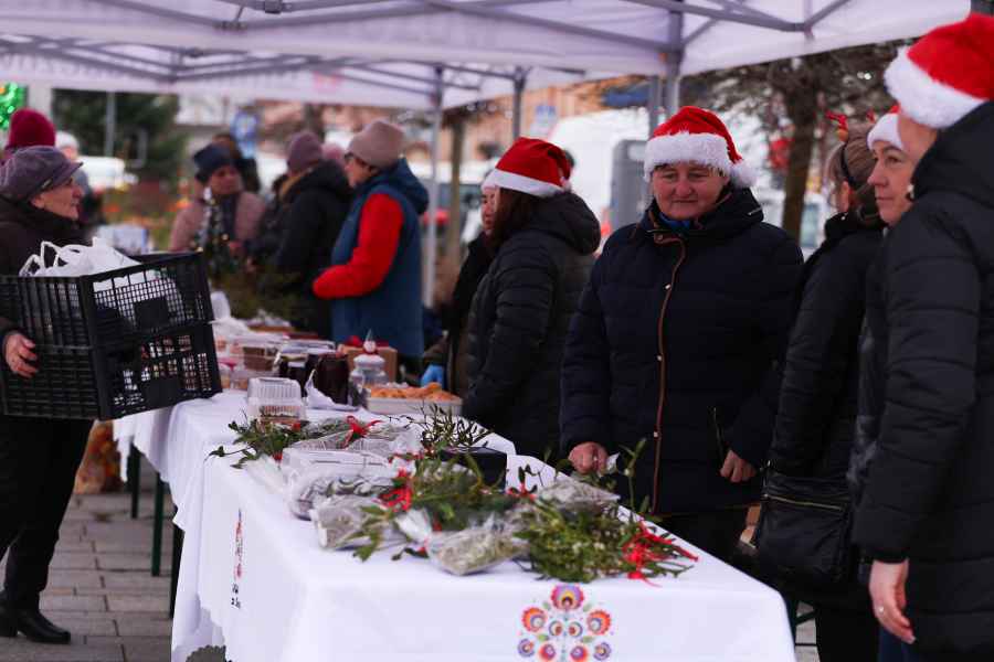 Na stoiskach wystawców dostępne były produkty przeznaczone na wigilijny stół. Oferowano domowe ciasta, chleby, lokalne wyroby i potrawy świąteczne, a także ręcznie wykonane ozdoby choinkowe oraz dekoracje.