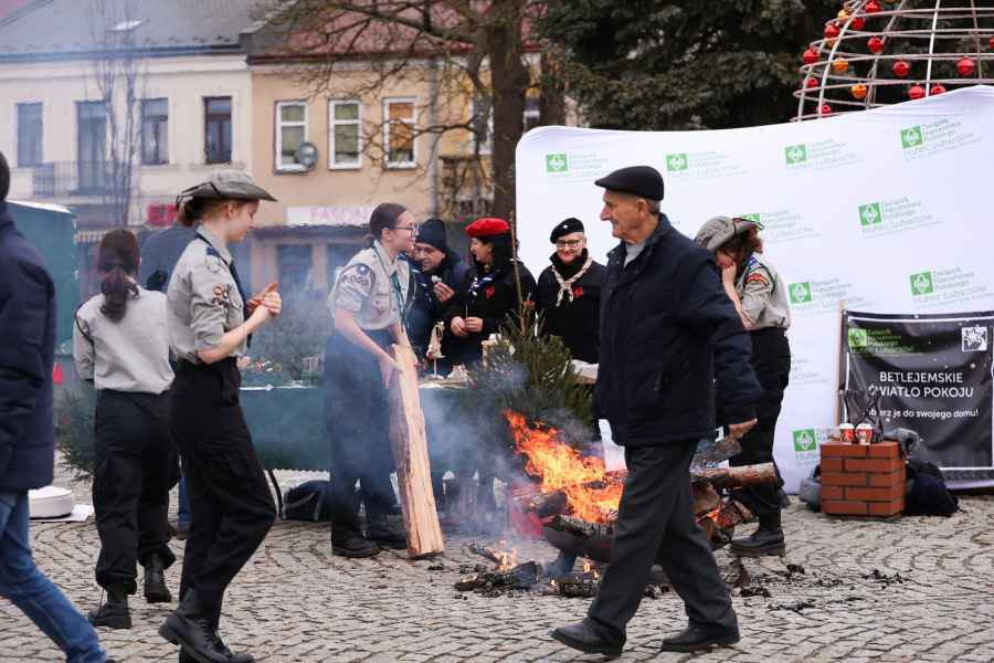 Podczas kiermaszu zuchy i harcerze z Hufca ZHP Lubaczów przekazały Betlejemskie Światełko Pokoju. Tradycyjny element wydarzenia od lat towarzyszy spotkaniom przed Bożym Narodzeniem i przypomina o idei dzielenia się dobrem.