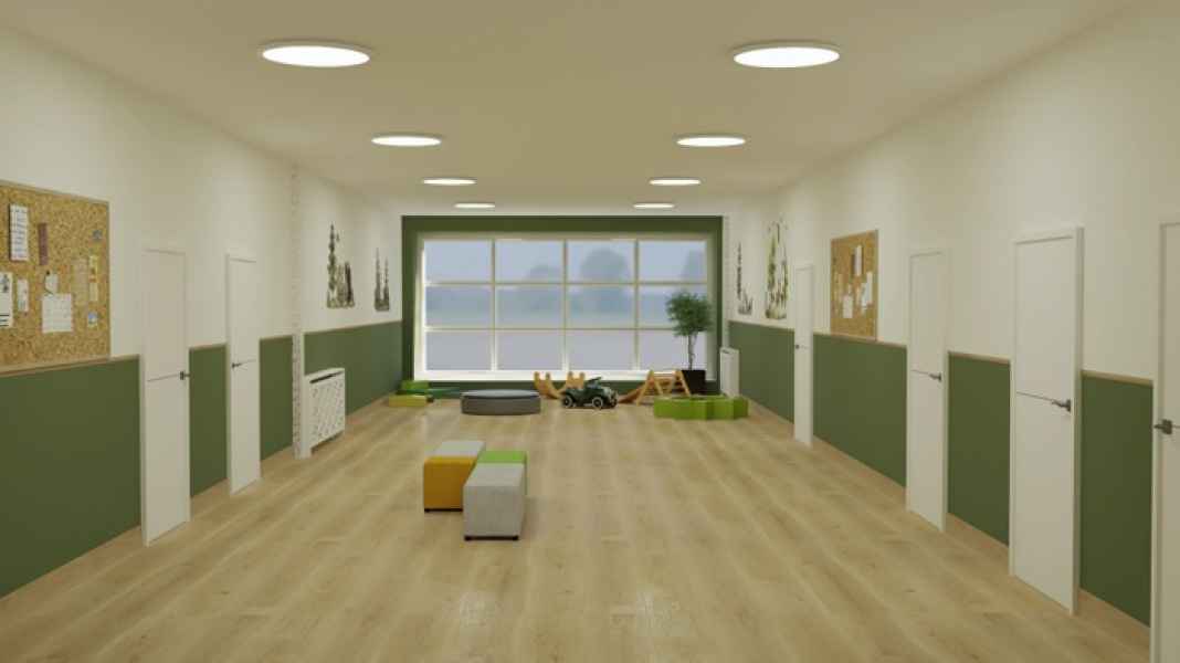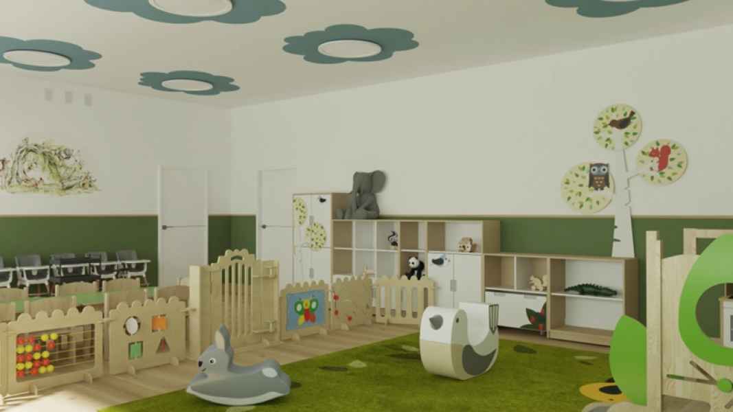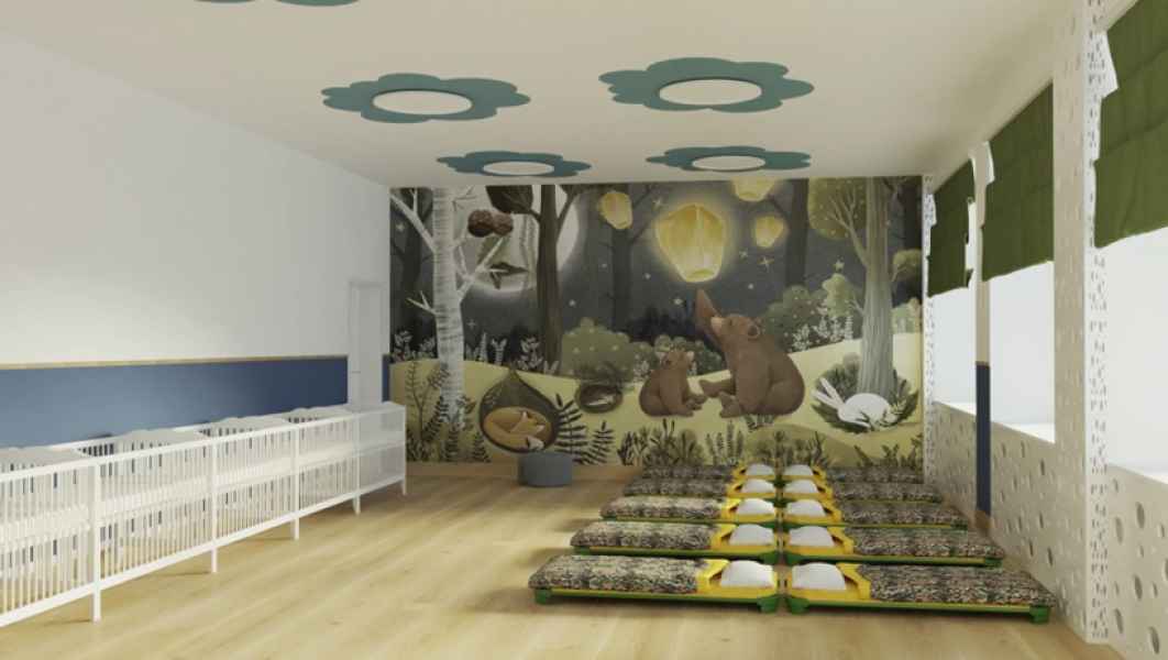 W ramach inwestycji dotychczasowa sala lekcyjna, biblioteka, pomieszczenia socjalne i gospodarcze oraz łazienki zostaną przekształcone w przestrzeń dostosowaną do potrzeb najmłodszych dzieci. Powstaną sala zabaw i sypialnia, kuchnia mleczna, przebieralnia, łazienka dla dzieci, łazienka dla personelu, pomieszczenie socjalne, biuro dyrektora placówki, magazyn oraz wózkownia. Konieczne będzie wykonanie nowych ścian działowych, zamurowanie części otworów oraz przygotowanie nowych nadproży.