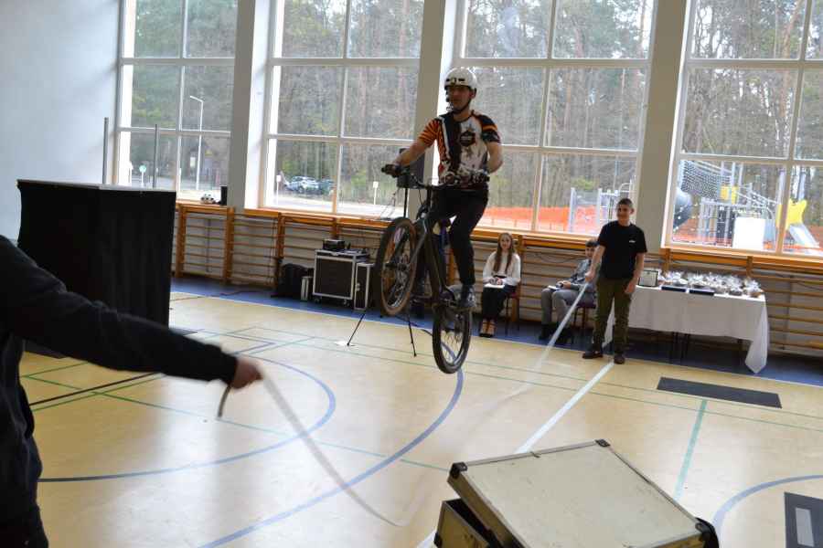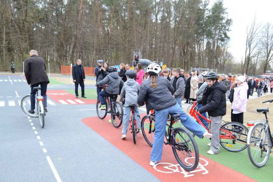 Zwieńczeniem uroczystości było symboliczne przecięcie wstęgi oraz pierwszy przejazd uczniów po miasteczku komunikacyjnym. Duże zainteresowanie wzbudził także pokaz akrobacji rowerowych w wykonaniu Piotra Bielaka.