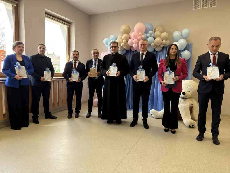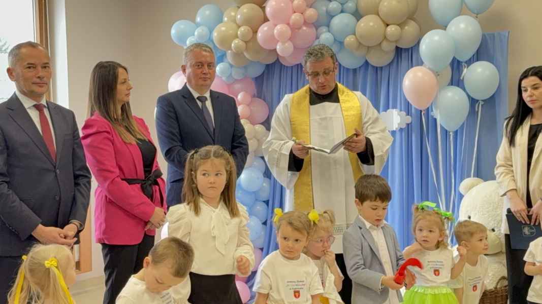Pierwsza część wydarzenia miała miejsce w Dąbkowie, gdzie uroczyście oddano do użytku nową część Gminnego Żłobka „Kraina Malucha”. Placówka od ponad dekady pełni ważną rolę w opiece nad najmłodszymi mieszkańcami, a dzięki realizacji programu Aktywny Maluch 2024-2030 została rozbudowana i dostosowana do rosnących potrzeb rodzin. Nowa przestrzeń została przygotowana z myślą o bezpieczeństwie i komforcie dzieci.