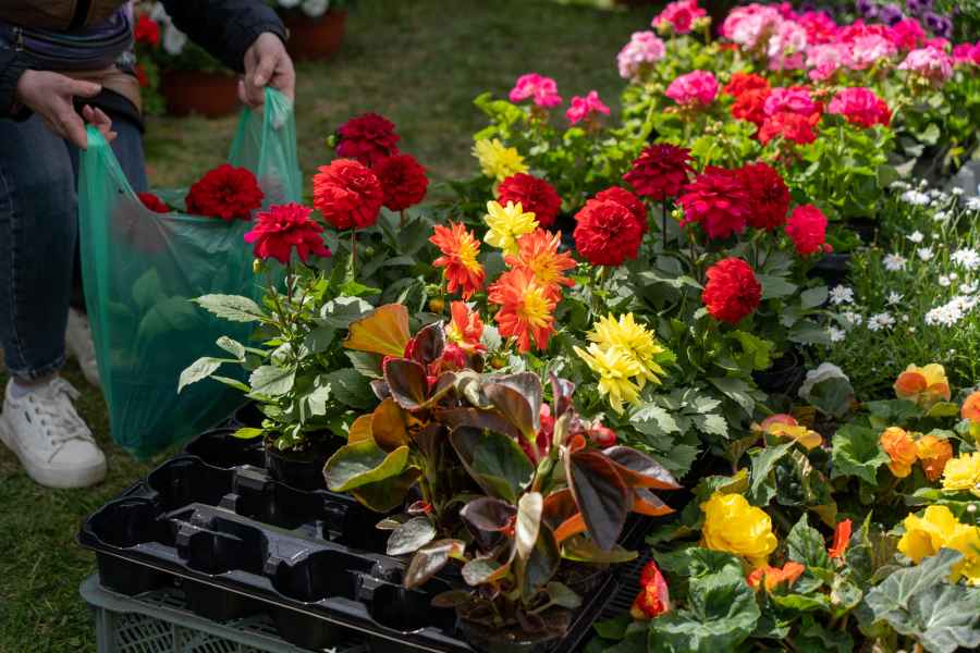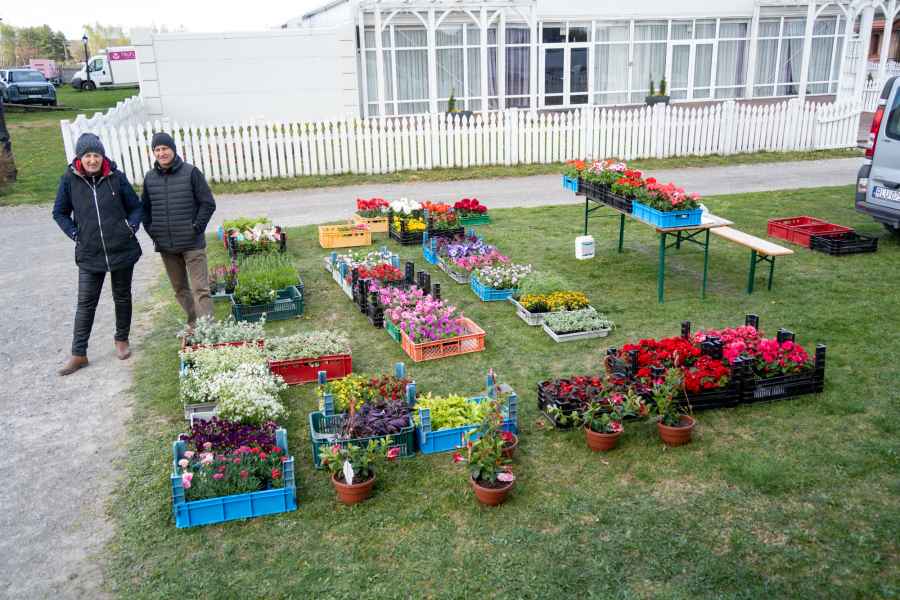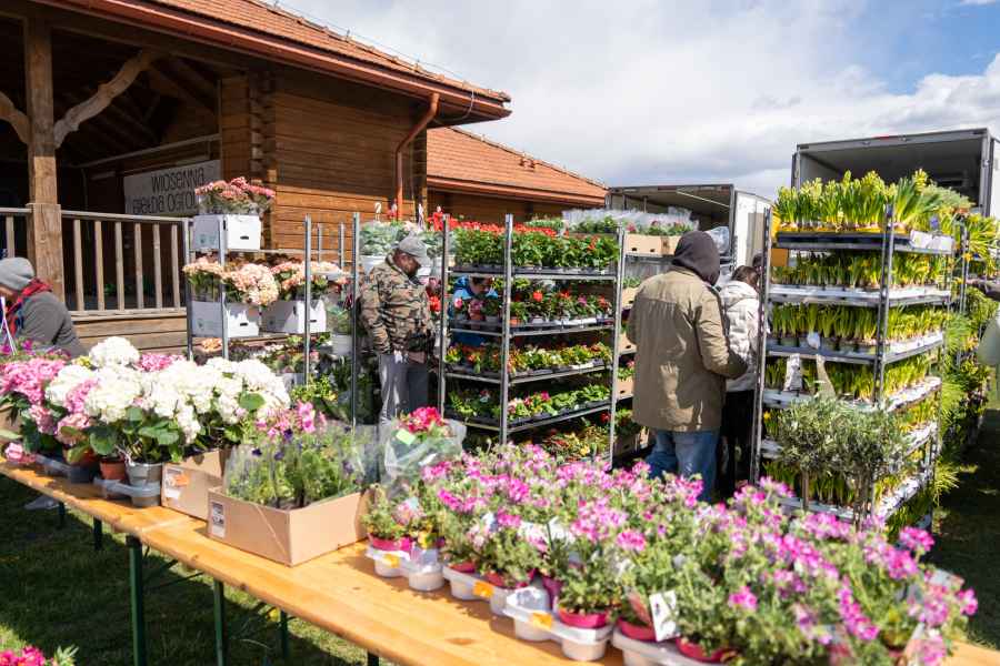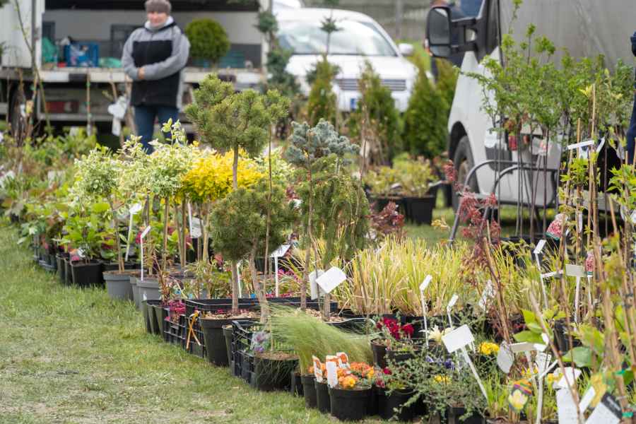 Od południa odwiedzający mogli przeglądać bogatą ofertę wystawców, wśród której znalazły się m.in. kwiaty rabatowe i doniczkowe, drzewka oraz krzewy owocowe, krzewy ozdobne, rośliny cebulowe, nasiona, a także rozsady warzyw i kwiatów. Nie zabrakło również wyrobów wikliniarskich, drewnianych i ceramicznych elementów do ogrodu oraz narzędzi pomocnych w pielęgnacji zieleni.
