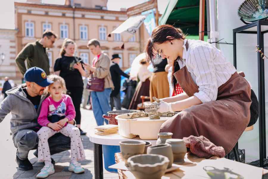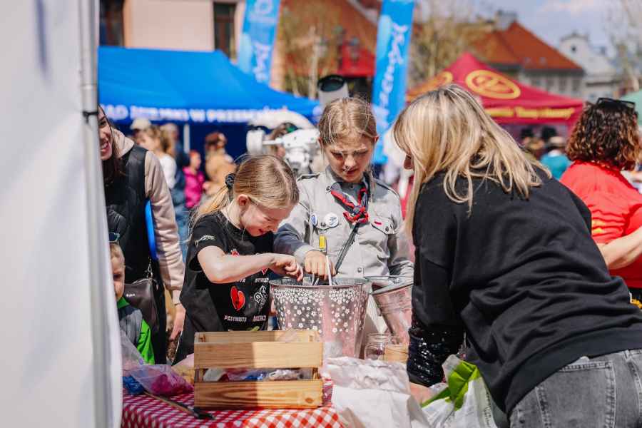 Stoisko przyciągało nie tylko materiałami promocyjnymi, ale też warsztatami przy kole garncarskim, pokazami tworzenia świec z wosku pszczelego i degustacją proziaków. Całość dopełniał występ Zespołu Pieśni i Tańca Kresy, który promował lokalną kulturę zarówno przy stoisku, jak i na scenie głównej wydarzenia.