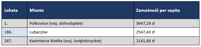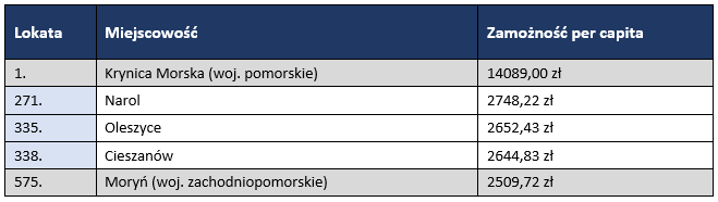 Miasta powiatowe i ich zamożność w rankingu krajowym