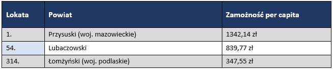 Miejsce powiatu lubaczowskiego w ogólnopolskim rankingu