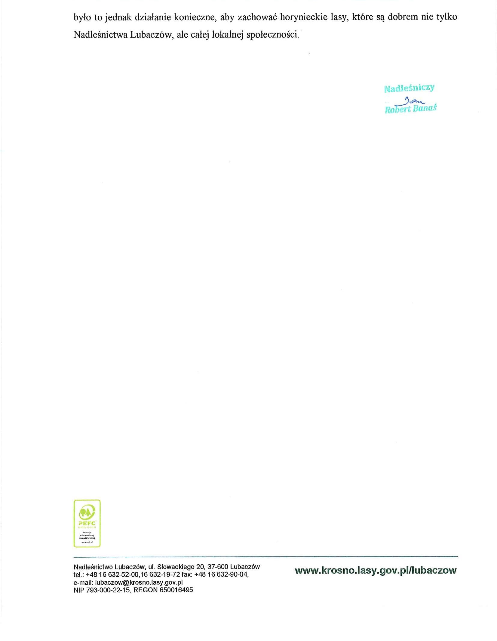 Poniżej sprostowanie Nadleśniczego Nadleśnictwa Lubaczów (kliknij tutaj, aby powiększyć)