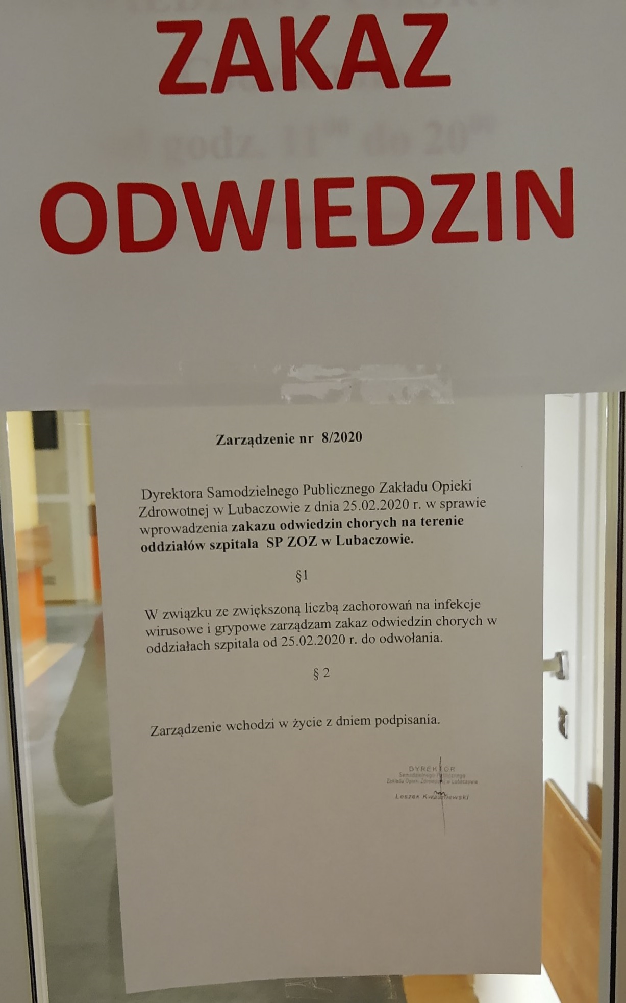 Dyrektor szpitala w Lubaczowie podjął decyzję o wprowadzeniu zakazu odwiedzin chorych. Ma to związek ze zwiększoną liczbą zachorowań na infekcje wirusowe i grypowe.