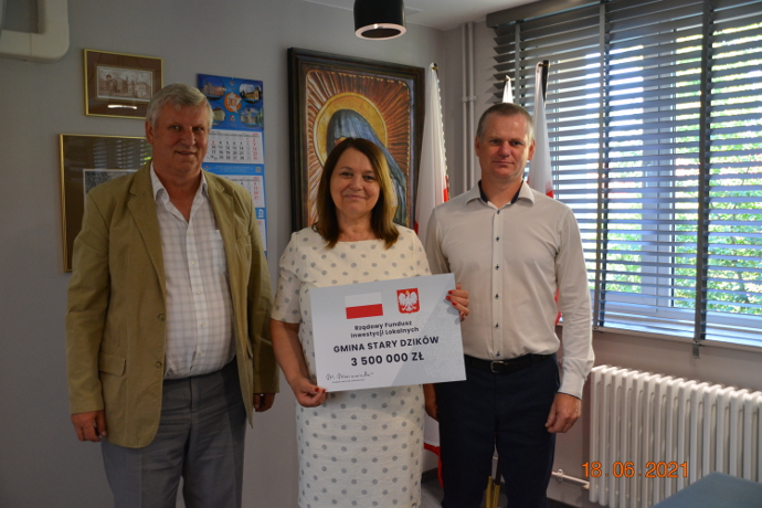 Umowę pomiędzy gminą a wyłonionym w przetargu wykonawcą – Przedsiębiorstwem Usługowo-Budowlanym Roman Głowala z Biłgoraja podpisał wójt gminy Stary Dzików Tomasz Jabłoński. Podczas oficjalnego podpisania dokumentów była obecna Poseł Teresa Pamuła, która zabiegała o dofinansowanie tej inwestycji.