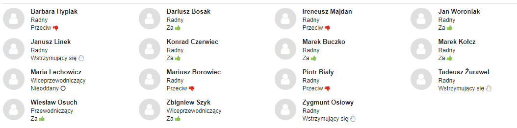 Za przyjęciem uchwały głosowało 7 radnych, 4 było przeciw, a 3 się wstrzymało. Poniżej imienna lista: