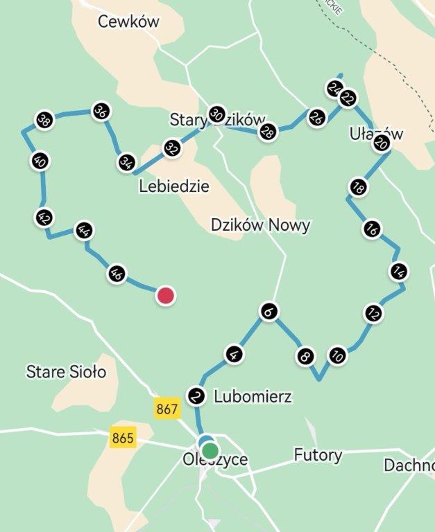 - Spotykamy się na dziedzińcu Urzędu Miasta i Gminy Oleszyce o godz. 10:00. Po złożeniu wiązanki kwiatów wyruszamy w kierunku Nowego Dzikowa do uroczyska Horaj, gdzie w symbolicznej chwili zadumy połączymy się z bohaterami Bitwy pod Oleszycami, żołnierzami 21. Dywizji Piechoty Górskiej pod dowództwem gen. Józefa Kustronia. Stamtąd będziemy poruszali się śladem naszych heroicznych bohaterów. Przejeżdżając przez nieistniejącą dziś wieś Pierożki, znajdziemy się na szlaku odwrotu 21. Dywizji Piechoty Górskiej, która 16 września 1939 roku próbowała przedostać się do Tomaszowa Lubelskiego. Wpadła jednak w niemiecką zasadzkę, w wyniku której życie stracił gen. Józef Kustroń. Odwiedzimy więc miejsce śmierci tego wspaniałego dowódcy, aby oddać hołd jemu i jego żołnierzom. Następnie spotkamy się przy synagodze i cerkwi w Starym Dzikowie i planujemy powrót do leśniczówki Zabiała. Całość trasy naszego rowerowego rajdu pamięci będzie wynosiła około 38 km. - informują organizatorzy